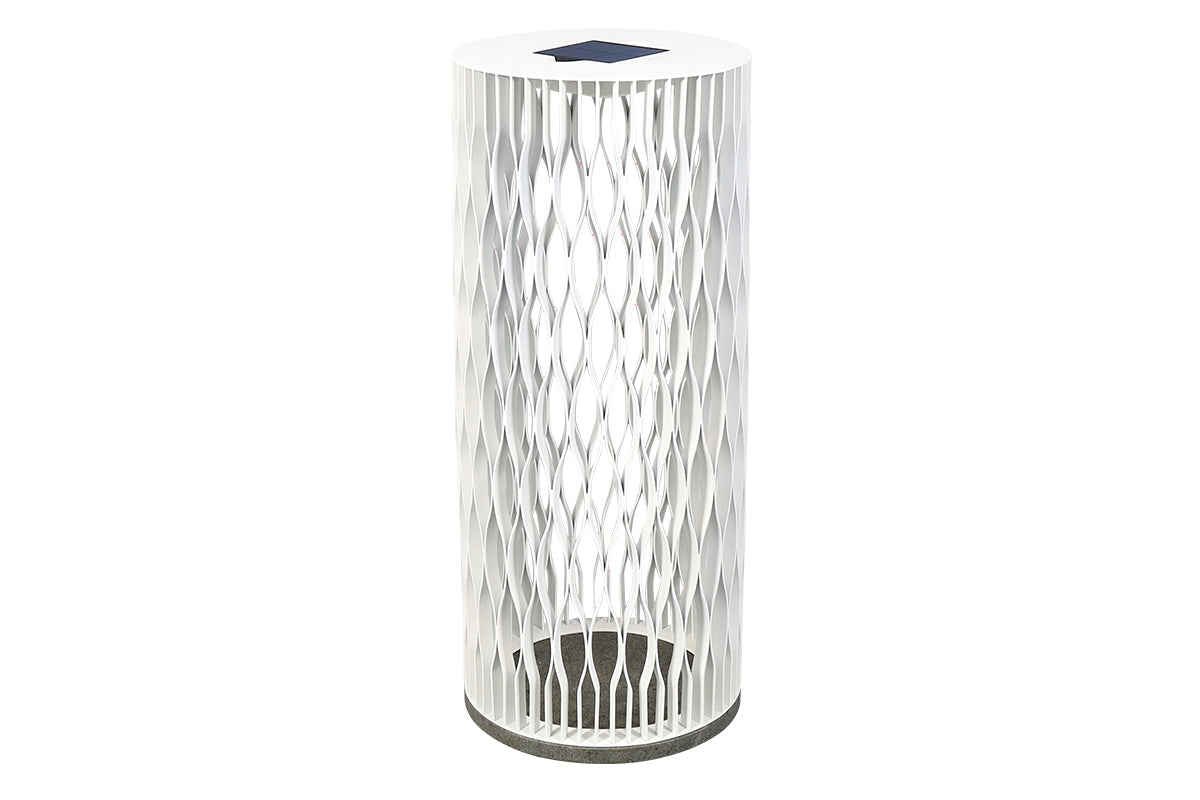 Lampe solaire de table au design sculptural, pensée pour créer une lumière douce et élégante sur une table, une terrasse ou un coin lounge.