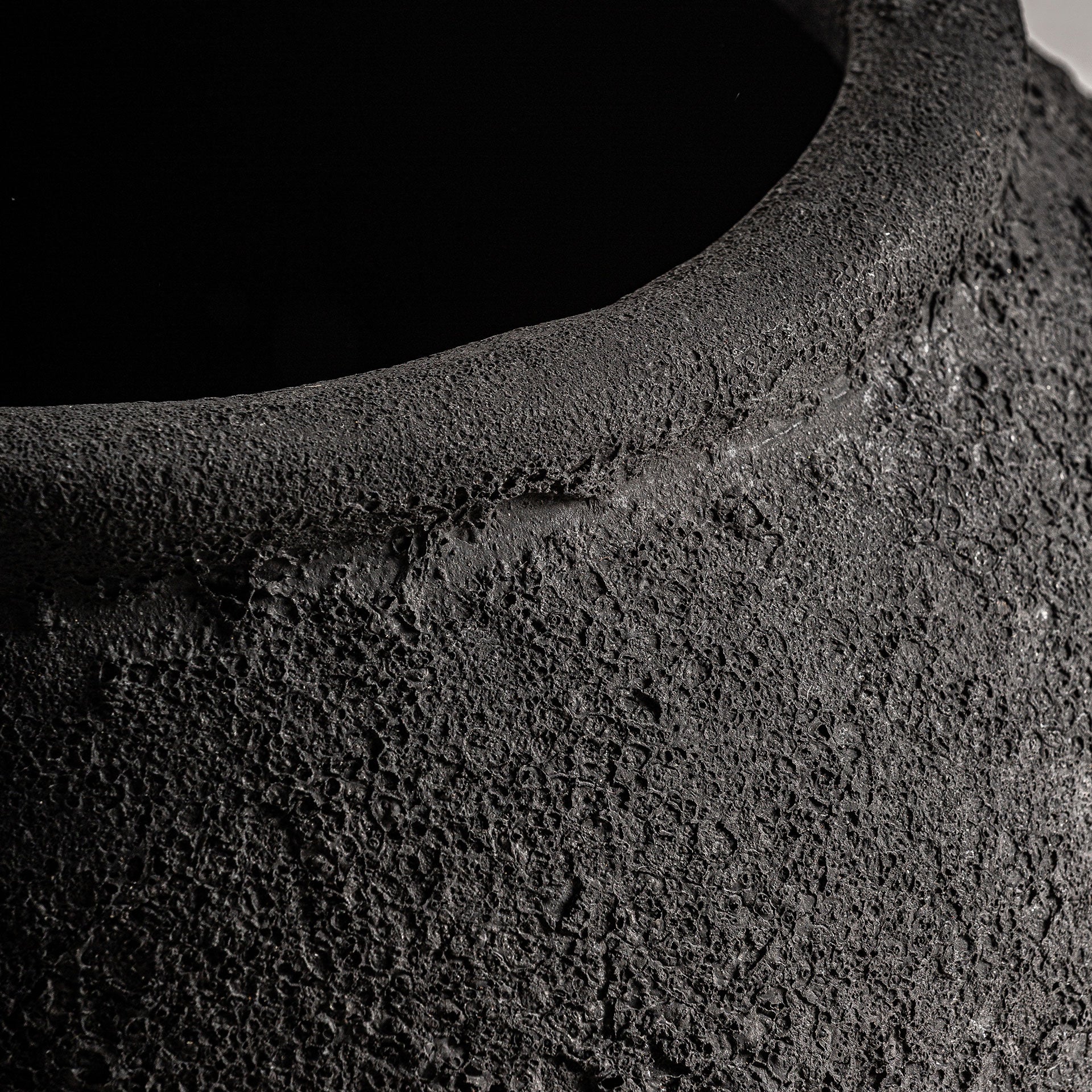 La jarre Kelyene séduit par sa céramique noire patinée et ses formes affirmées. Son aspect artisanal révèle une texture profonde qui capte subtilement la lumière.