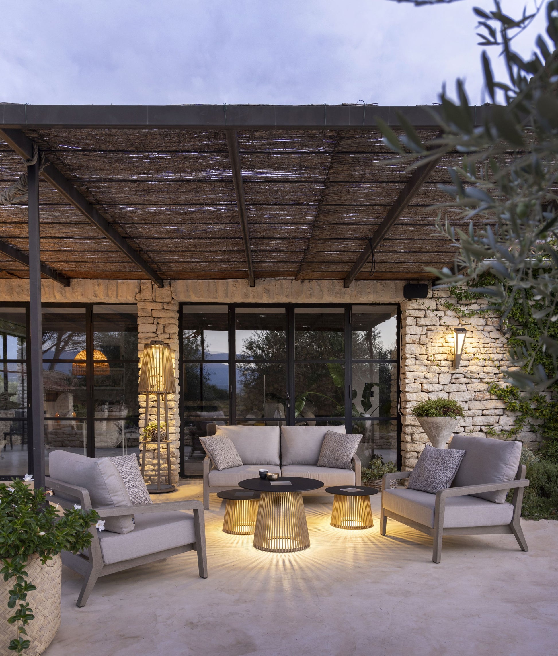 TECKA est une table basse solaire au design épuré, pensée pour structurer un espace extérieur tout en diffusant une lumière d’ambiance douce et élégante.